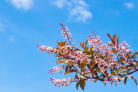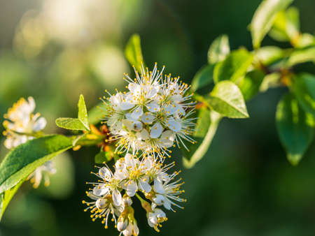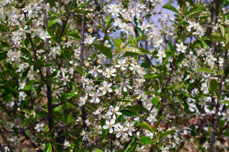 Prunus Cerasifera Blooming white plum tree. White flowers of Prunus Cerasifera