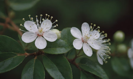 AI Generated. Psidium guajava is adorned with delicate white petals creating an exquisite copy space image