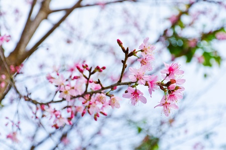 Pink Cherry blossom flower in winter ,Thai sakura at Chaing Mai