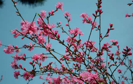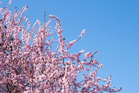 Pink blossom over the blue sky in the springtime