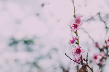 Pink soft sweet and vintage of Sakura flowers background