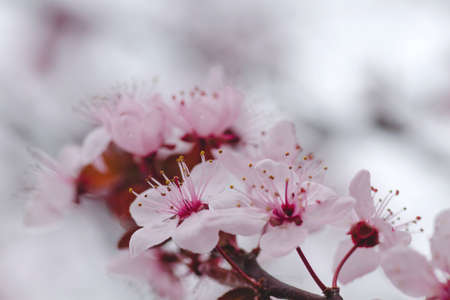 Vintage cherry blossom Bright attractive cherry plum blossom flowers blooming in spring