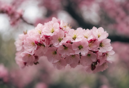 Pink cherry blossoms blooming on the branches