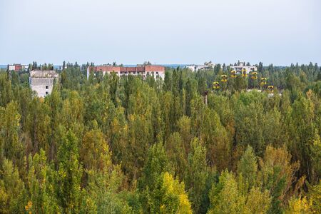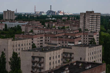 Panorama of Prypiat city, Chernobyl exclusion Zone. Chernobyl Nuclear Power Plant Zone of Alienation in Ukraine Soviet Union