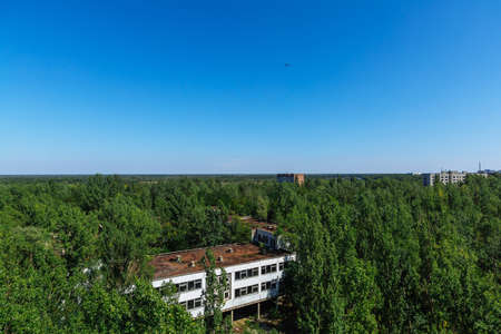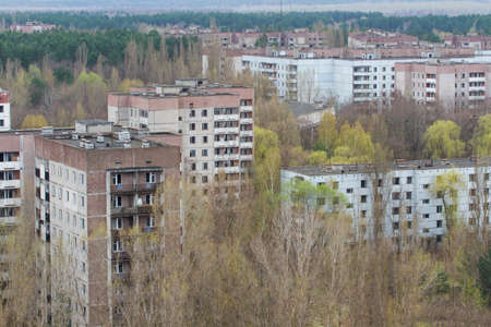 Aerial view on residential area of abandoned Pripyat city in Chernobyl Exclusion Zone, Ukraine