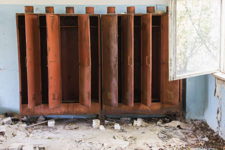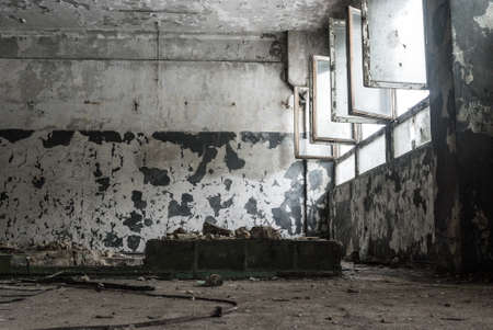 A interior of abandoned old building many years after nuclear powerplant explosion.