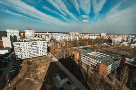 Abandoned town Pripyat in Chernobyl's area Ukraine. Exclusion zone from the high empty abandoned building.