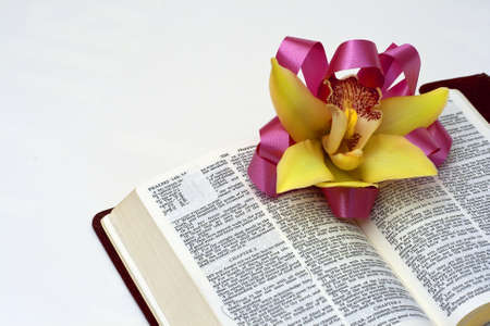 An Easter corsage on Bible opened to a favorite verse