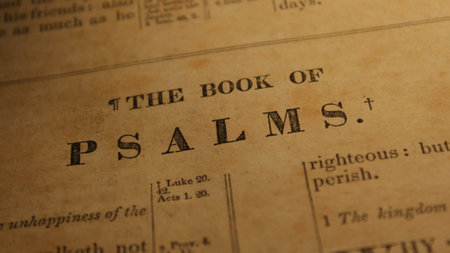An opened bible focused on the word Psalms