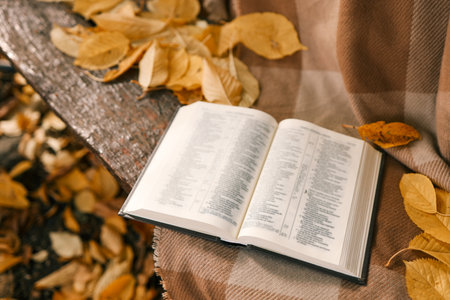 Open book on a blanket, autumn.