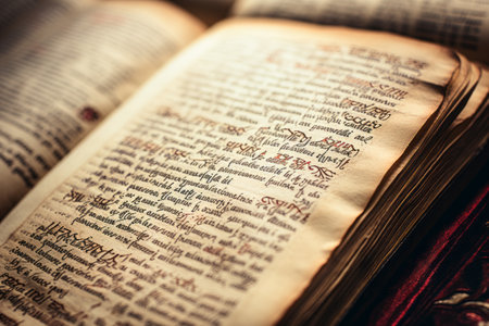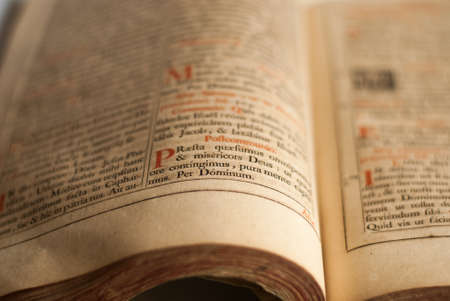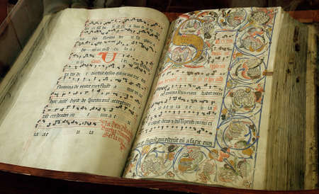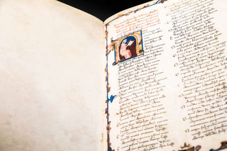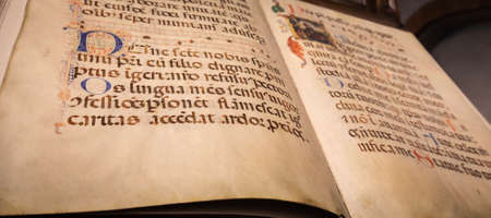 TURIN, ITALY - CIRCA MAY 2021: antique Medieval manuscript with ancient calligraphy.
