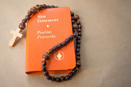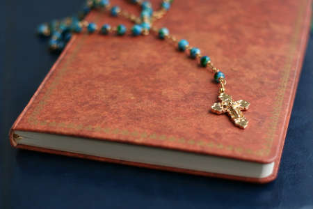 Christian cross necklace on Holy Bible book, Jesus religion concept as good friday or easter festival