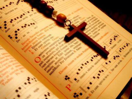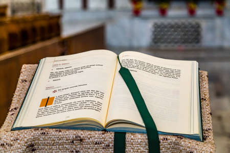 ROME, ITALY - JANUARY 4, 2019: light is enlightening Holy Bible in basilica of Saint Sabina in Aventine District