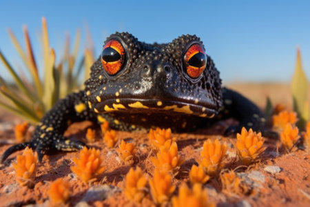 a fiery-bellied toad on a patch of desert vegetation, created with generative ai