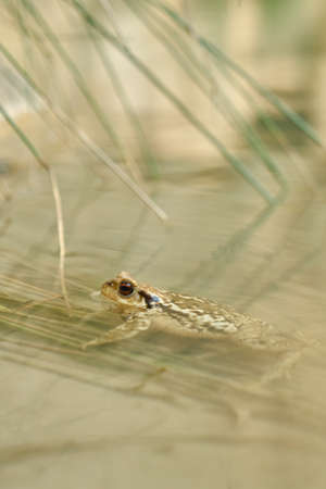 European green toad - Bufotes viridis hiding on a Volvox colony