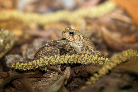 Fowlers Toad Anaxyrus fowleri resting in woodland undergrowth during the Spring