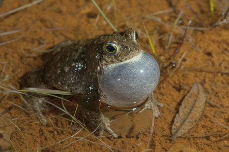 Close up view of the Iberian spadefoot toad (Pelobates cultripes) in nature.
