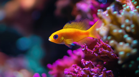 A stunning image of a colorful fish swimming gracefully among vibrant coral reefs, showcasing the beauty and diversity of marine life in an underwater ecosystem.