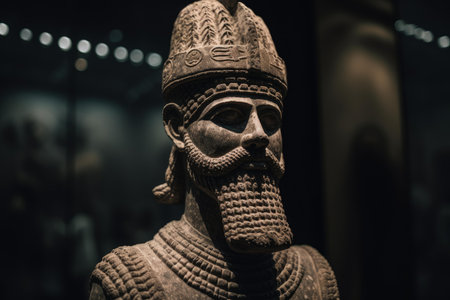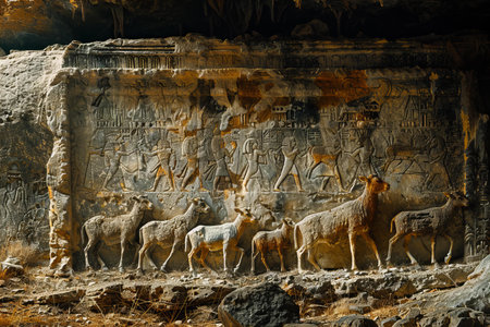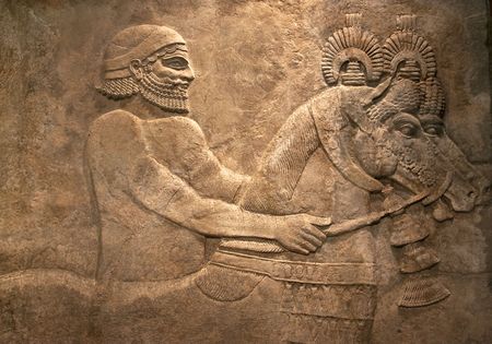 Ancient mesopotamian stone carvings, a historical artifact exhibition showcasing intricate relief sculptures and engraved mythological figures from mesopotamian. Assyrian. Babylonian