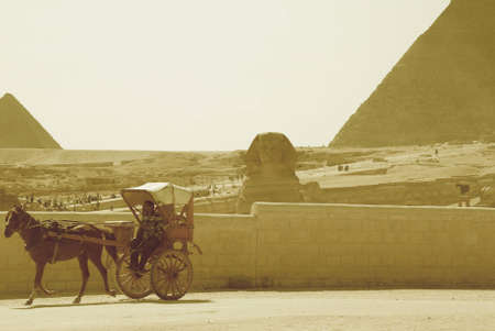 Wagon next to the statue of Sphinx (near Cairo 07.04.2009). Each has the destiny - life goes on. It looks how if the picture was done in 60th of 20th centuries.