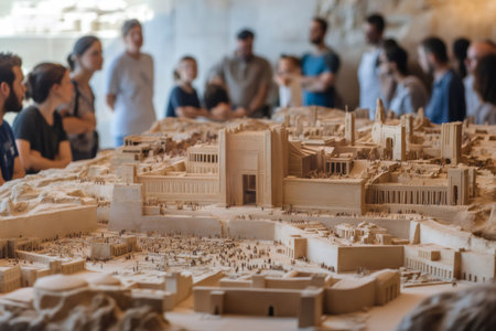 Scale model depicting ancient Jerusalem and its grand temple, showing the historical layout and architecture to an observing audience