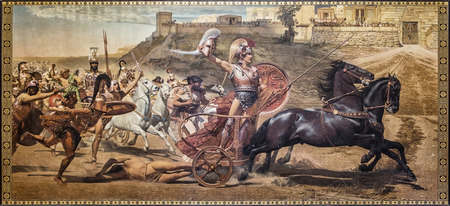 The Triumph of Achilles c. 1895 the oil painting by Franz Matsch that resides on the upper level of the main hall in the Achillion Palace in Corfu.