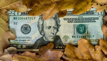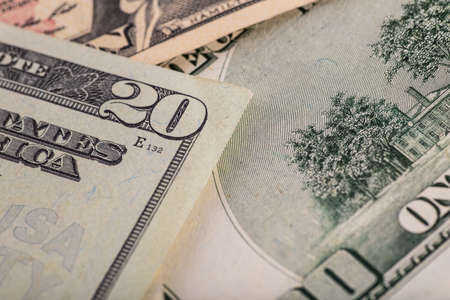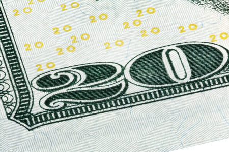 twenty American old dollars close-up, cash banknote of 20 American dollars