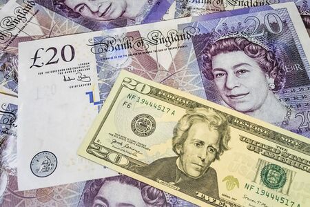 Warsaw, Poland - July 1, 2017: British currency. Fan of British 20 Pound banknotes