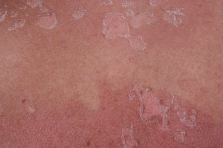 Red skin with blisters on male shoulder and back