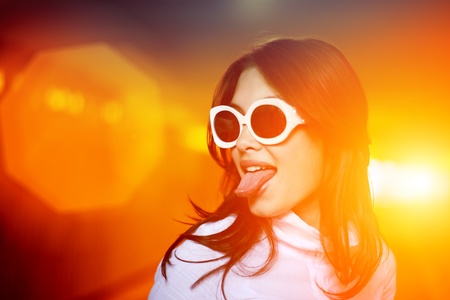 Fun portrait of young woman sticking her tongue out