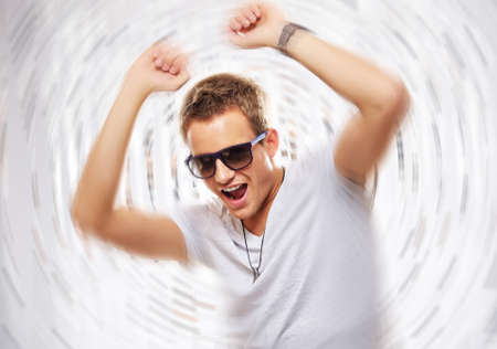 Stylish young man dancing in the nightclub