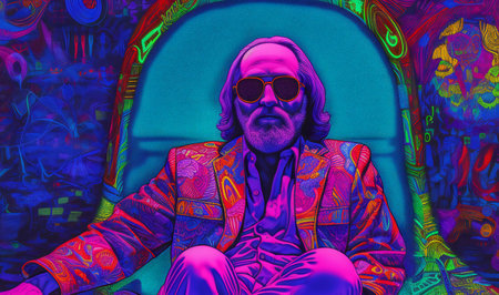 Portrait of an old hippie man in a psychedelic style.
