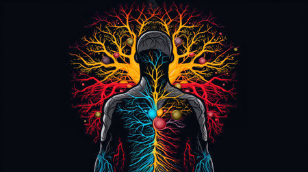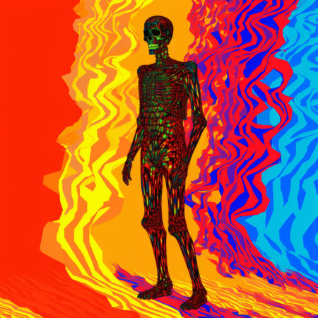 Thermal imaging colors mapping relaxation zones on a silhouette, AI generated image