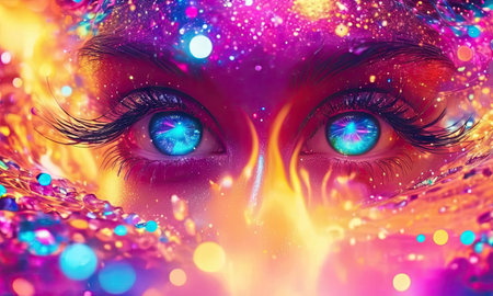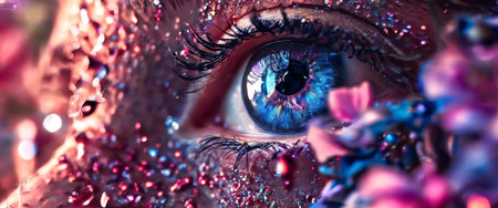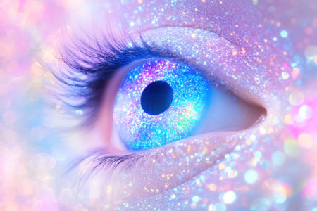 Woman With Sparkling Eye Make-Up, Fantasy, Sci-Fi Image Created by Digital Art of Glitter Reflection