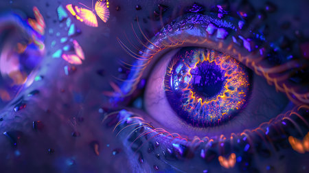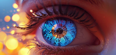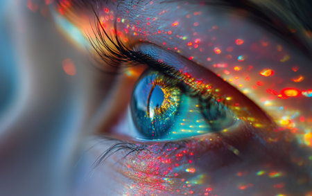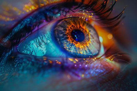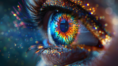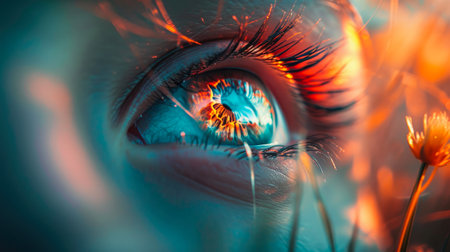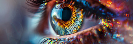 Captivating close-up view of a human eye showcasing intricate details, vibrant colors, and artistic lighting, reflecting emotion and beauty in nature.