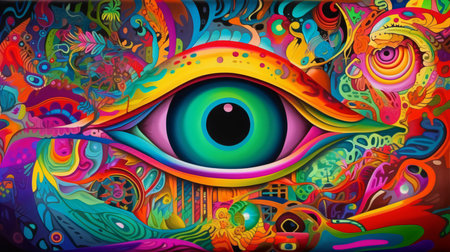 Colorful eye. Psychedelic background. Vector illustration. ai generative