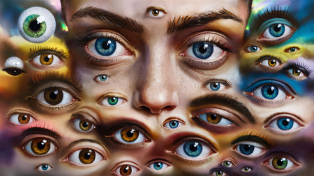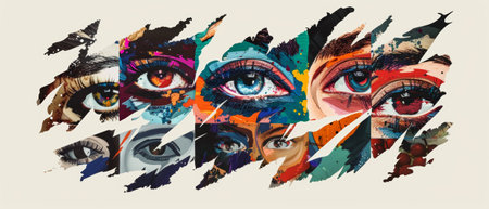 Colorful close-up of expressive eyes showcasing varied hues and emotions in a creative art setting
