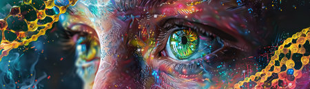 Genetic engineering through AI eyes colorful DNA strands and digital manipulation