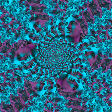 Abstract painting. Mirrored round fractal. 3D rendering.