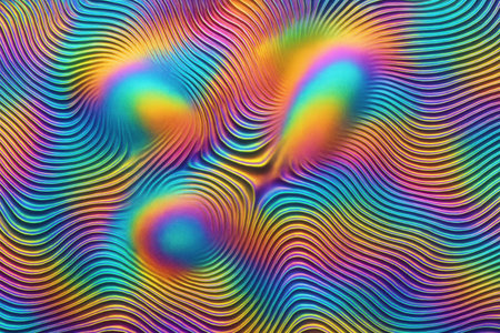 3d render. Liquid pattern like waves. 3D stylish abstract iridescent bg of wavy surface like brilliant liquid glass with rainbow beautiful gradient colors. Trendy colorful fluid