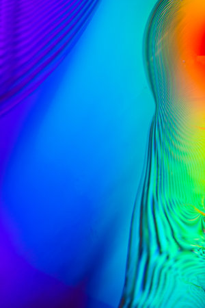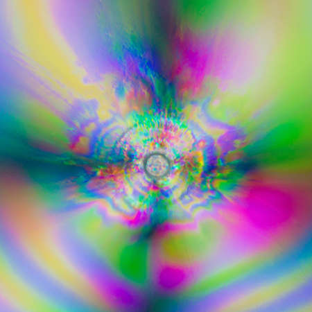 Colorful psychedelic blur showing stress distribution in plastic using polarized light