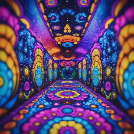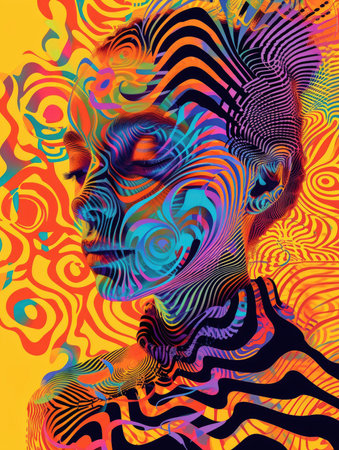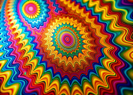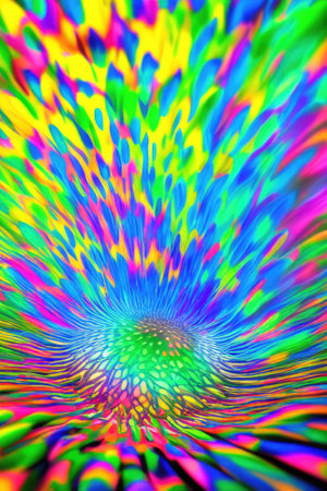 Vibrant Abstract Psychedelic pattern filled with Colorful Patterns and mesmerizing Fluid Motion, evoking dynamic energy and fluidity throughout the imaginative design