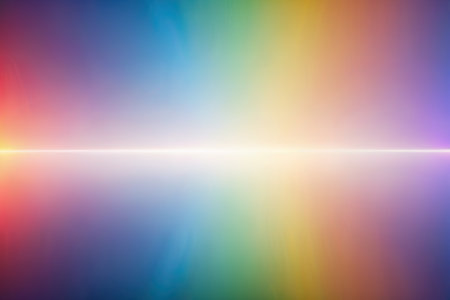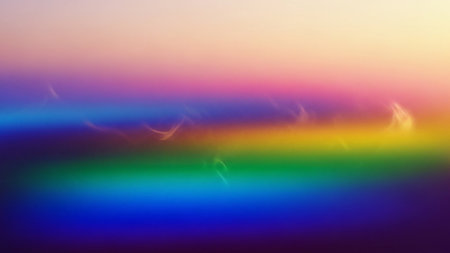A soft focus abstract background with a rainbow gradient and subtle light streaks, creating a dreamy, hazy horizon effect.