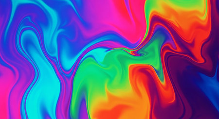 A vibrant, abstract background featuring swirling liquid with intense rainbow and holographic colors, creating a mesmerizing fluid pattern.