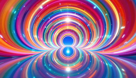 This vibrant and colorful tunnel creates a mesmerizing journey with swirling patterns and bright lights. Perfect for abstract concepts and digital art.