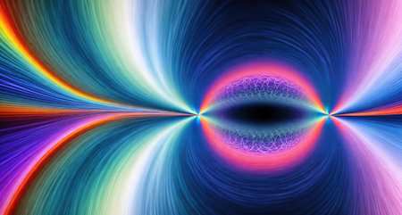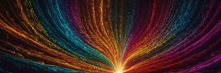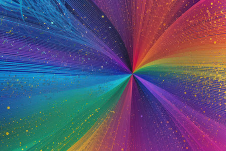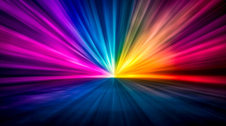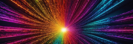An abstract image featuring a rainbow light burst emanating from the center against a dark background, creating a visually stunning effect.
