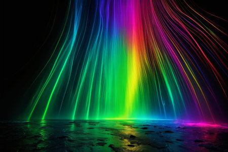 Colorful laser beams dancing in the night sky creating a rainbow effect