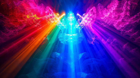 Mystical glowing crystals in the dark with rainbow rays