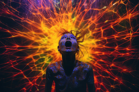 Man colorful psychedelic experience. Artwork trend. Generate AI