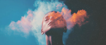 Ethereal double exposure smoke and nebula creating a cosmic portrait
